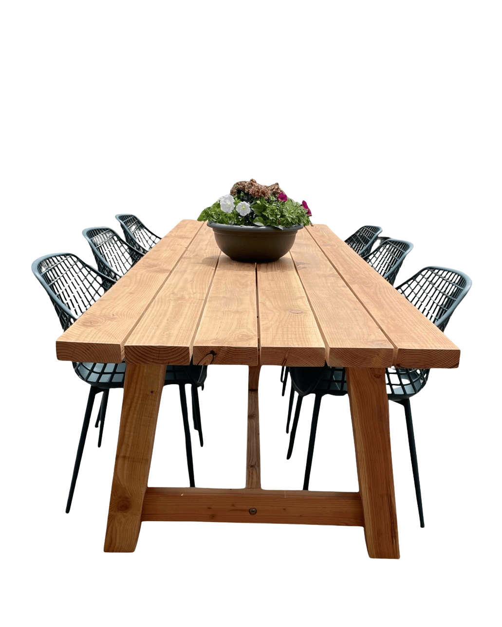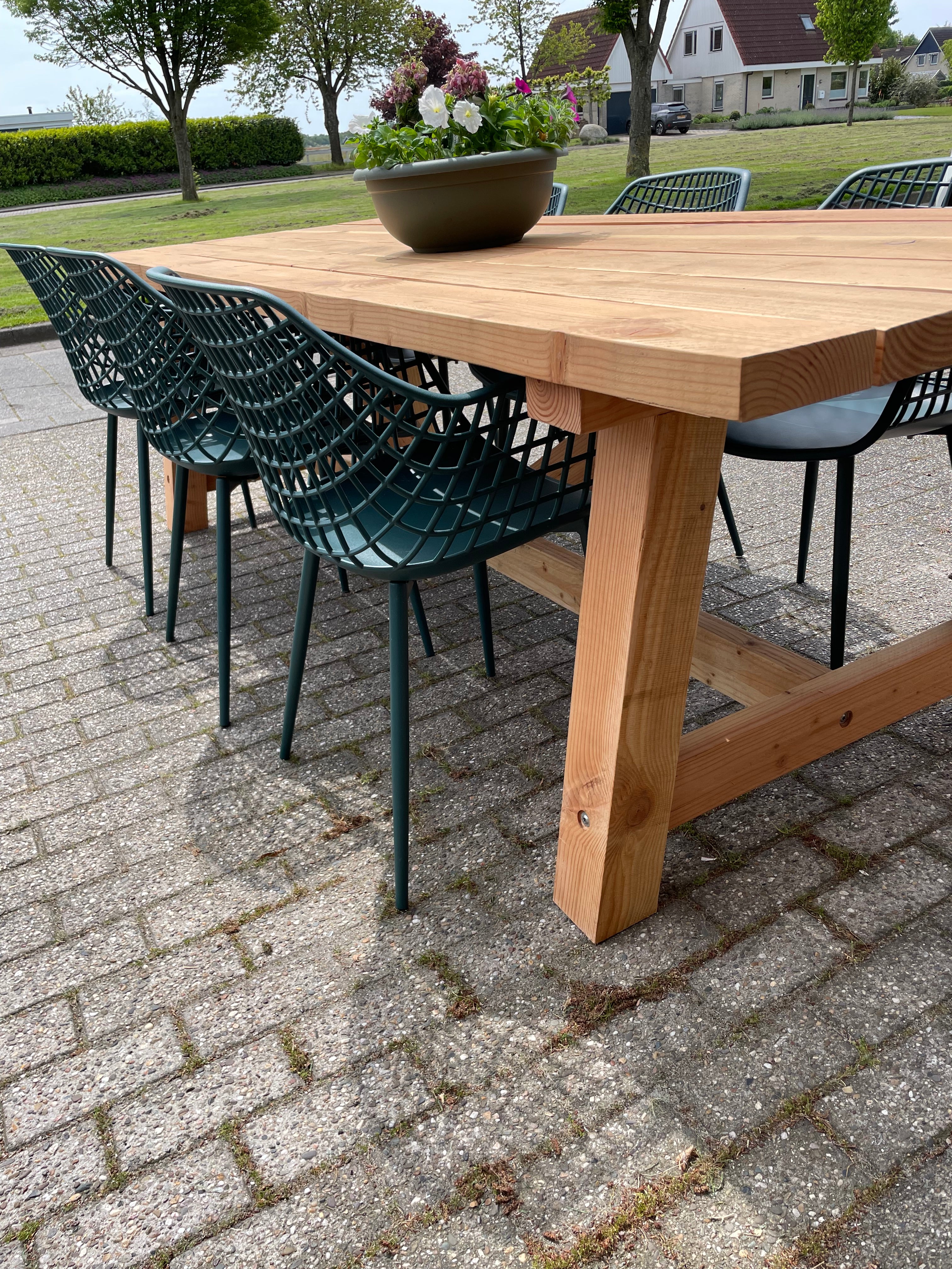 Onze douglas tuintafels worden handgemaakt en hebben een stoere, robuuste en natuurlijk uitstaling. Dankzij de sterke balken en de stevige constructie d.m.v. tellerkopschroeven is de tafel niet alleen een blikvanger maar ook zeer praktisch.