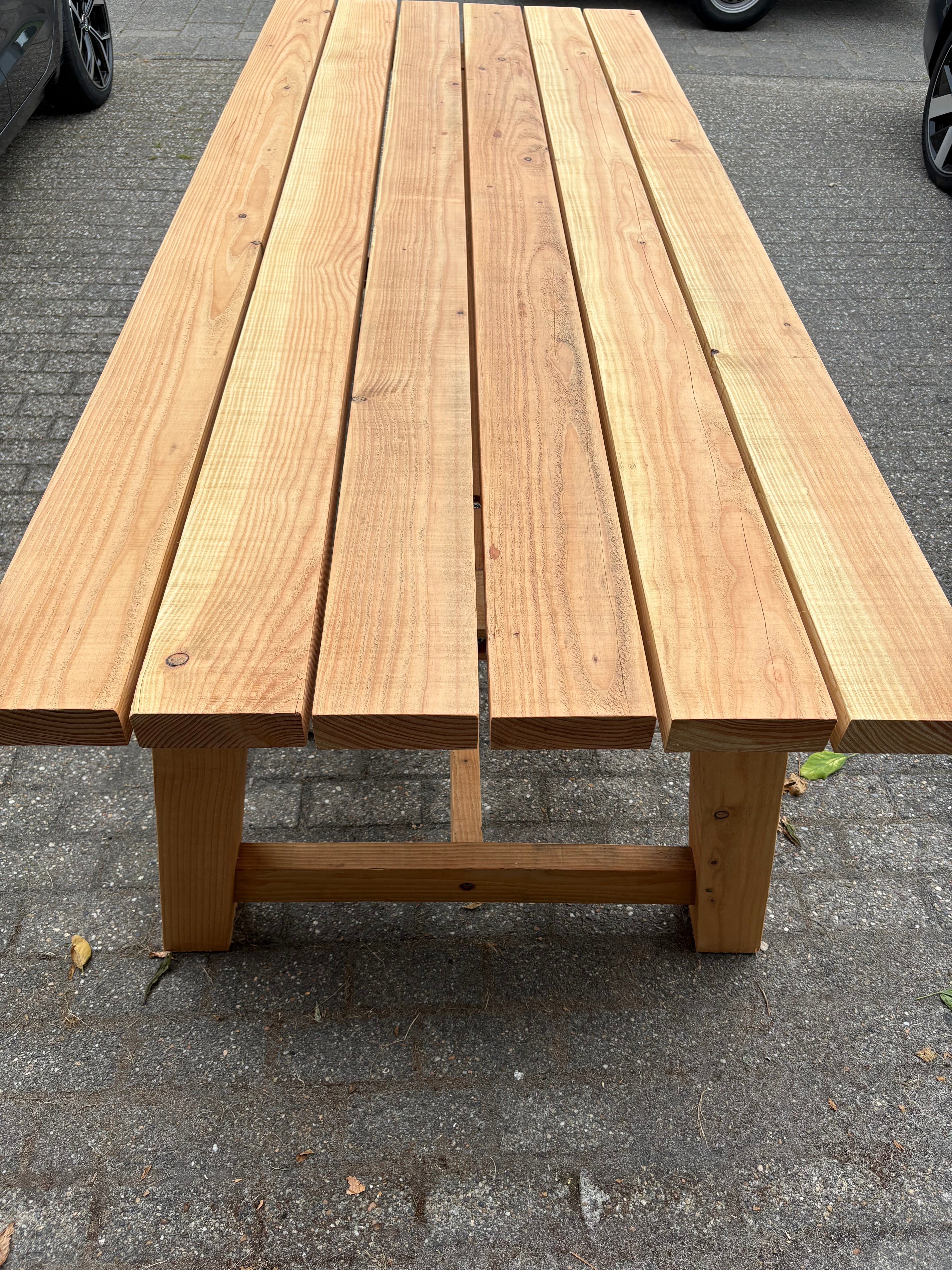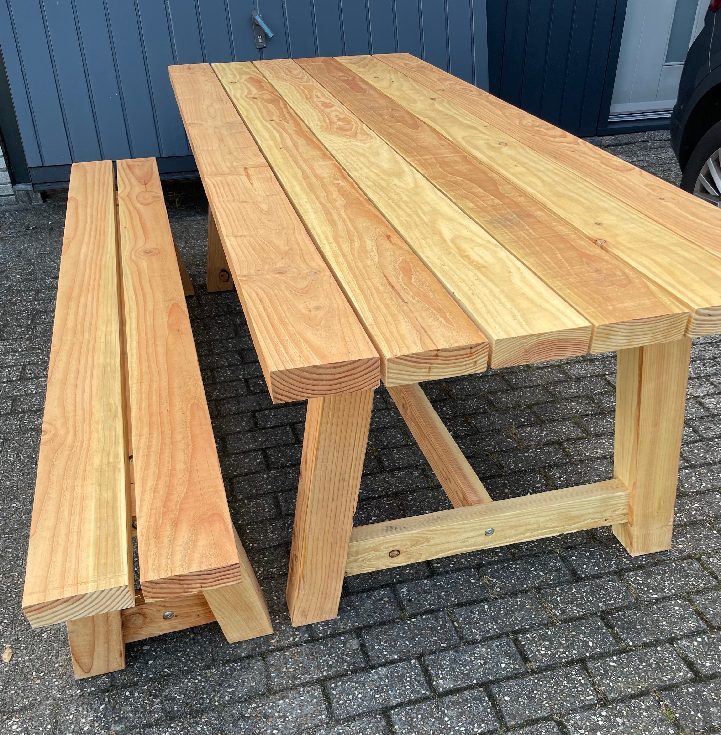 Al adviseer ik wel als u de mooie Douglas kleur wilt behouden om de tafels te behandelen.