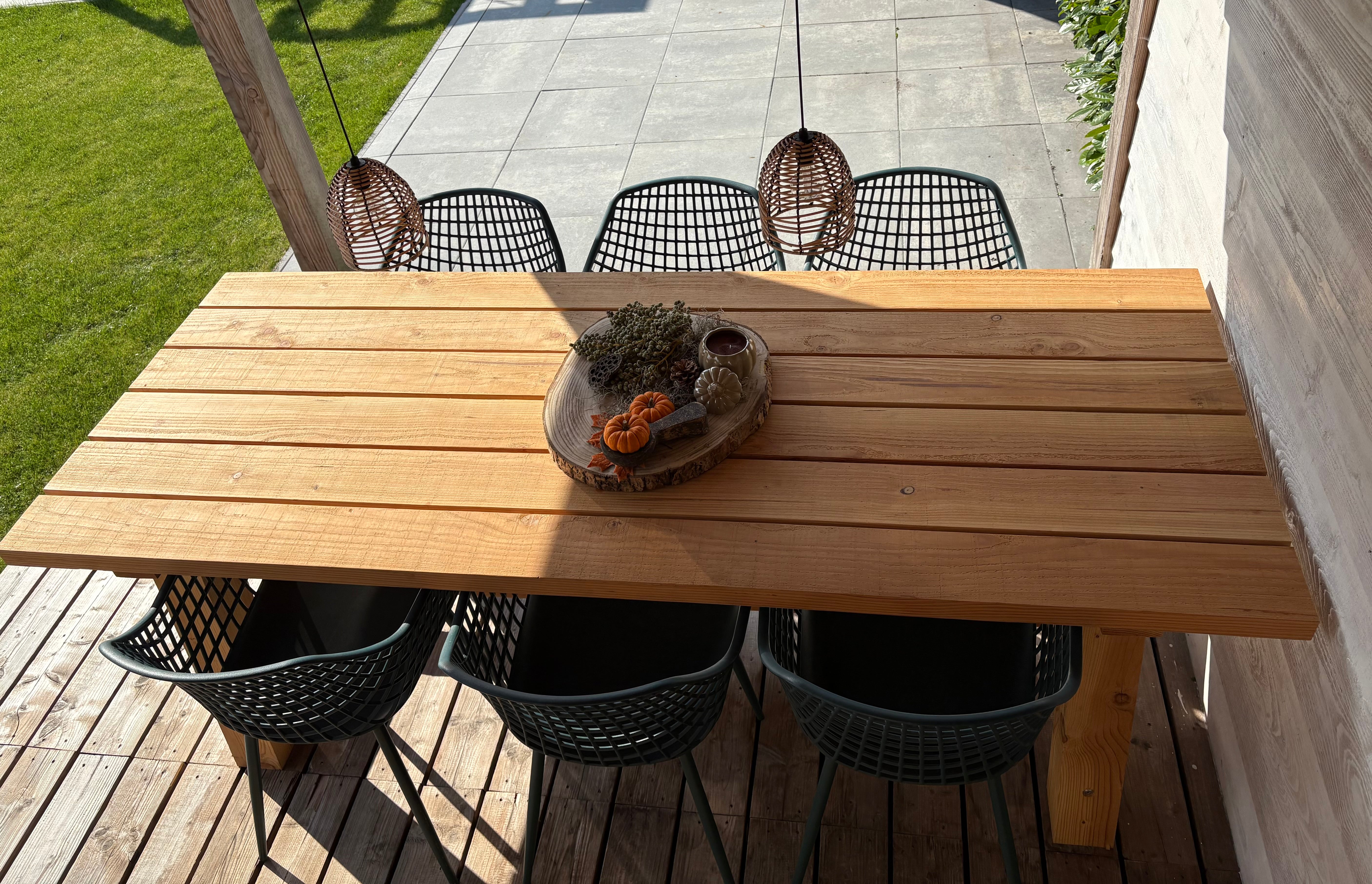 Al adviseer ik wel als je de mooie douglas kleur wilt behouden om de tafels te behandelen.