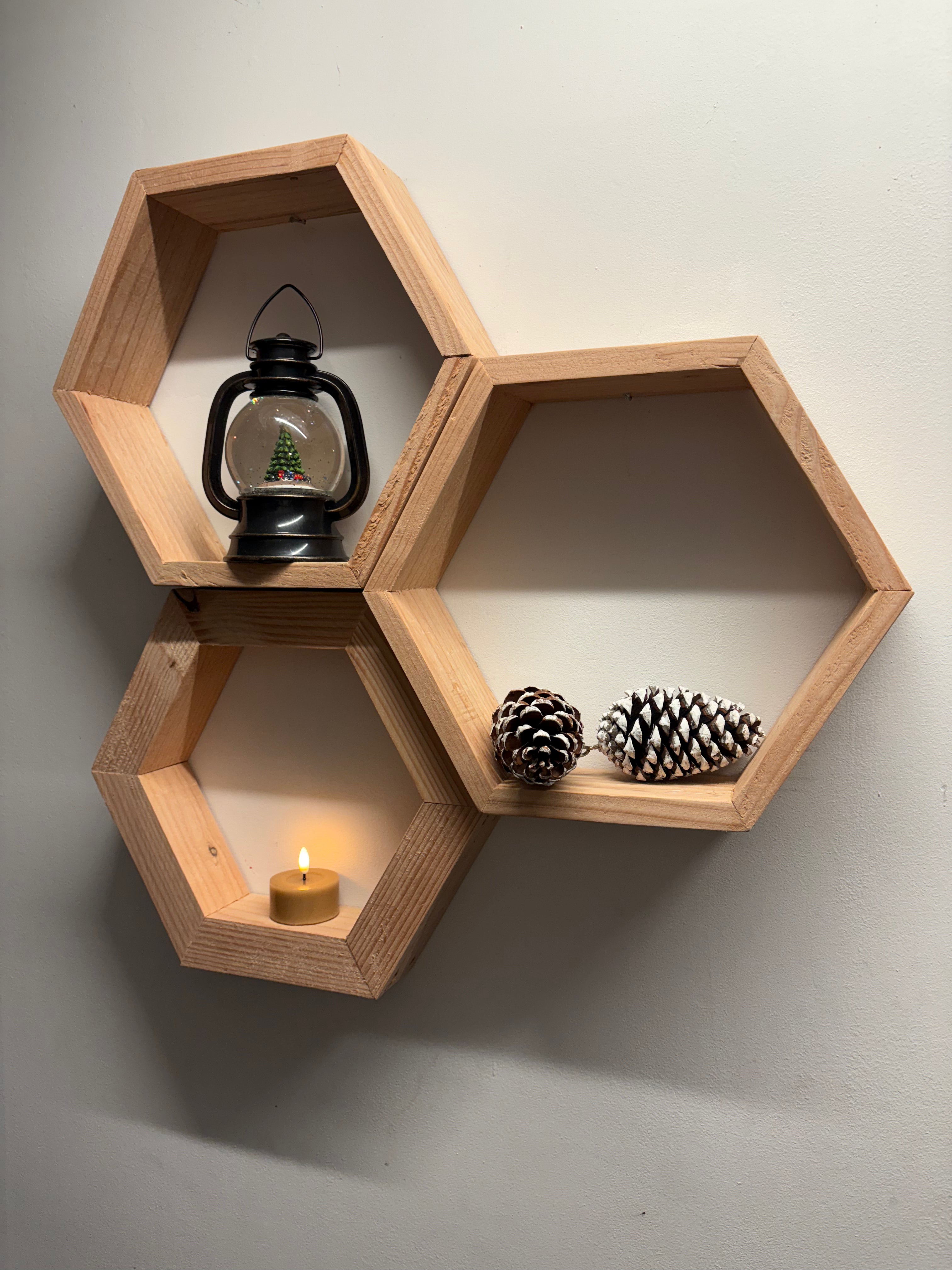 Per stuk krijgt u één hexagon kastje, gemaakt van geschuurd douglas hout.